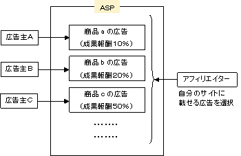 ただし、広告主はアフィリエイト・サービス・プロバイダ(ASP)※と