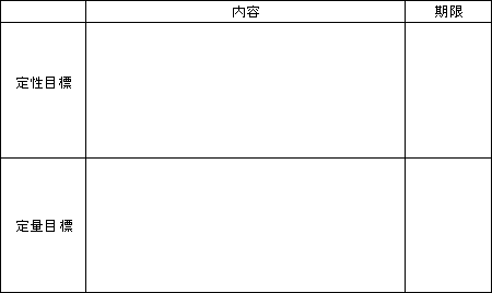 A 「定性目標」と「定量目標」を検討し、その内容と期限を記入します。検討のポイントは以下のとおりです。